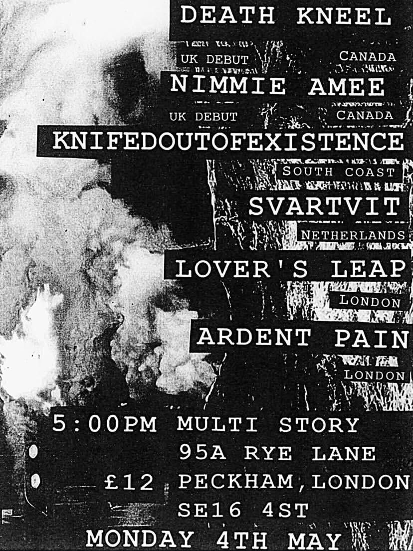 Monday, May 4th we'll play at Multi-Story Peckham with knifedoutofexistence, Svartvit, Lover's Leap, and Ardent Pain. Tickets can be purchased here.